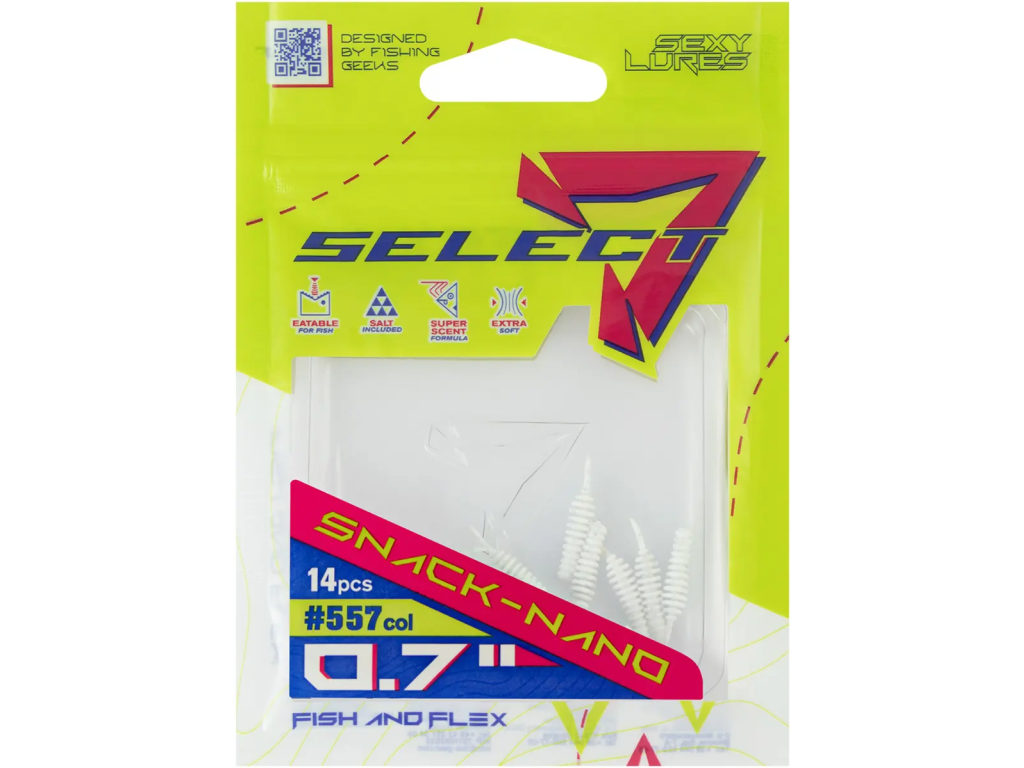Select Snack to imitacja pulchnego robaka z obszernym, głęboko żebrowanym korpusem - jest to bardzo łakomy kąsek dla wielu gatunków ryb.Dzięki dużej liczbie segmentów Snack charakteryzuje się bardzo realistyczną pracą. Cechą charakterystyczną tej konstrukcji jest to, że pęcherzyki powietrza są uwięzione w głębokich żebrach, a podczas pozostawienia przynęty na dnie unoszą jej ogon niemal pionowo w górę.Najskuteczniejszym sposobem zbrojenia Snacka jest pojedynczy hak, standardowy lub offsetowy. Można również użyć stosunkowo krótkiej, podwójnej kotwiczki, najlepiej wykonanej z cienkiego drutu, aby swoją masą w jak najmniejszy sposób zakłócała pracę przynęty. Przód przynęty jest dość szeroki, co pozwala jej pewnie trzymać się na haczyku i zapobiega ześlizgiwaniu się Snacka podczas brania.Select Snack świetnie sprawdza się podczas łowienia okoni, pstrągów oraz sandaczy, a najmniejsze wersje tej przynęty doskonale prowokują do brań wzdręgi, płocie oraz wiele innych gatunków białorybu.Szczególnie polecamy łowienie na Snacka z czeburaszką lub jig rigiem, ale jest on także zabójczo skuteczny z takimi zestawami jak drop-shot, boczny trok oraz carolina rig.